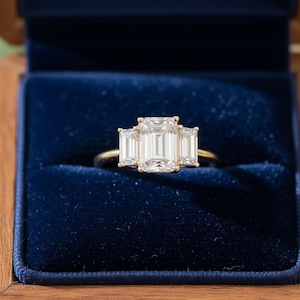 💎Main Stone: Moissanite 💎Main Stone Color: Colorless 💎Main Stone Shape: Emerald 💎Main stone creation: Lab-created