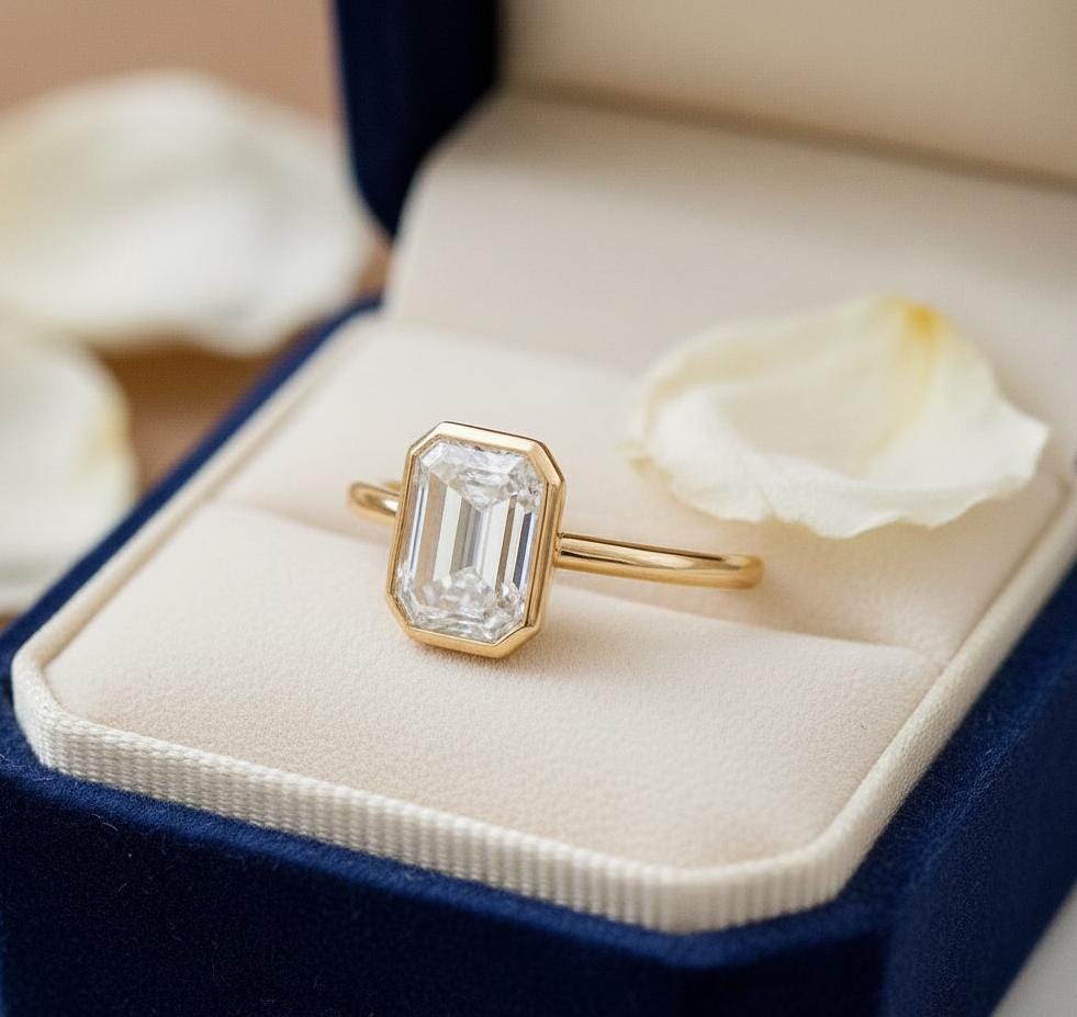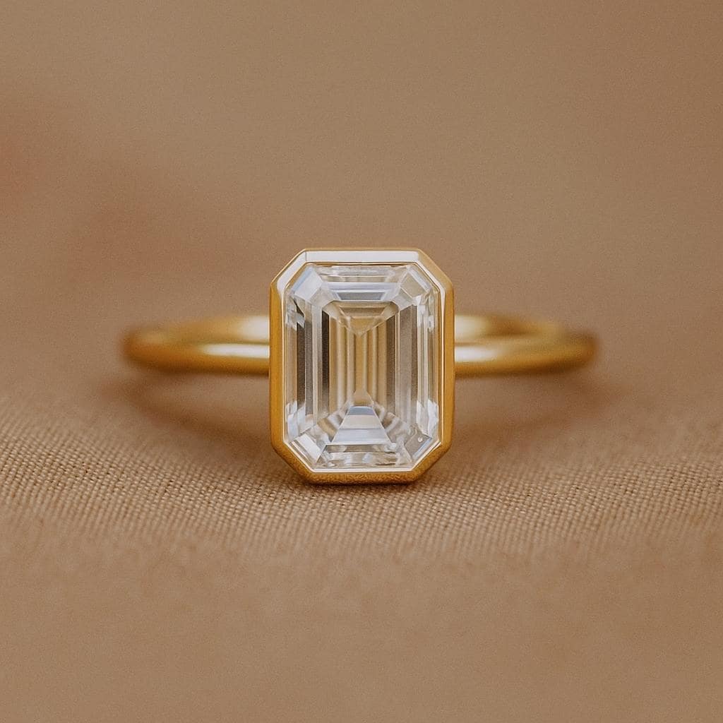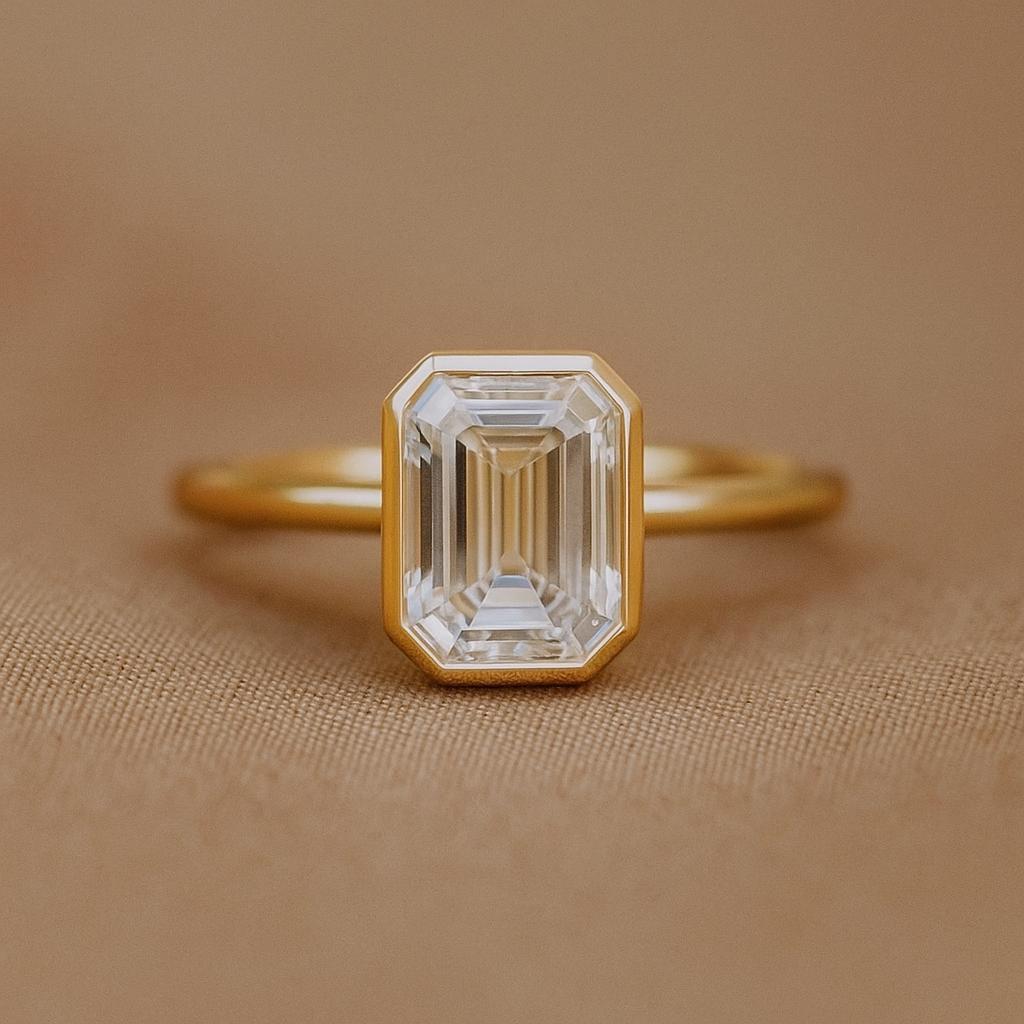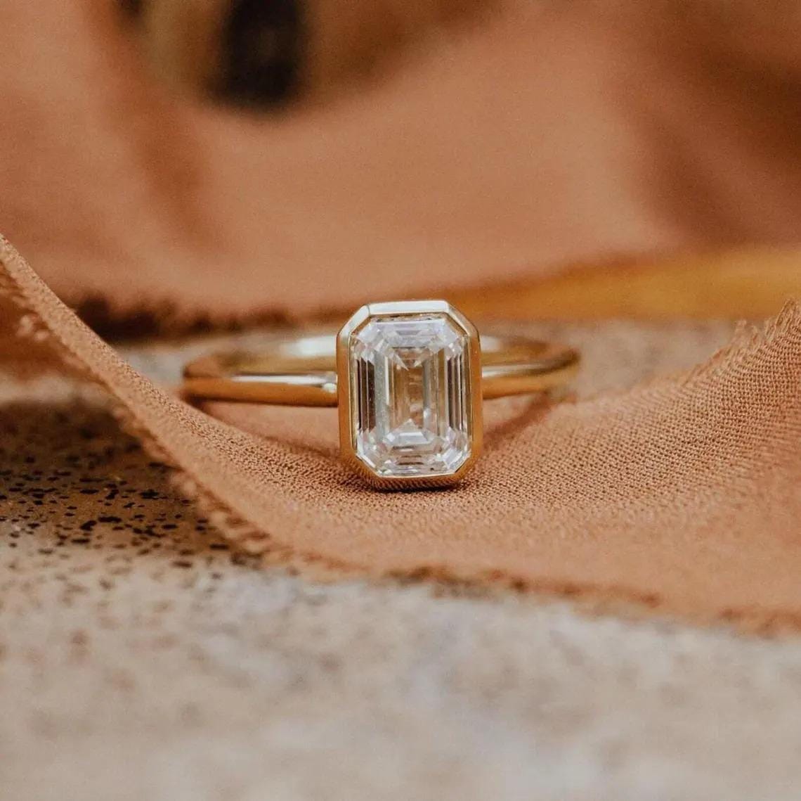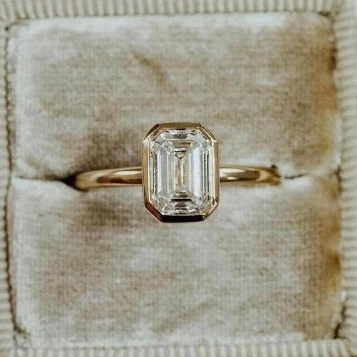 2CT Emerald Cut Moissanite Engagement Ring | Anniversary Ring For Women | Bezel Set Wedding Promise Ring | Gold Ring | Proposal Ring