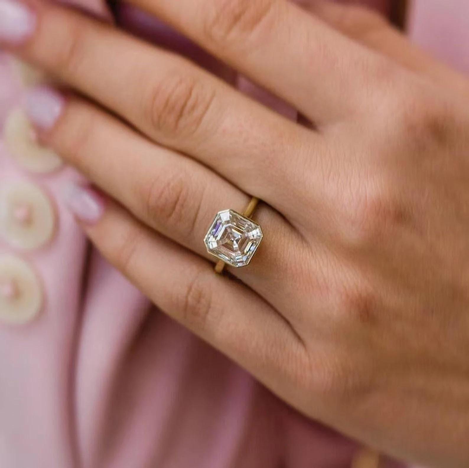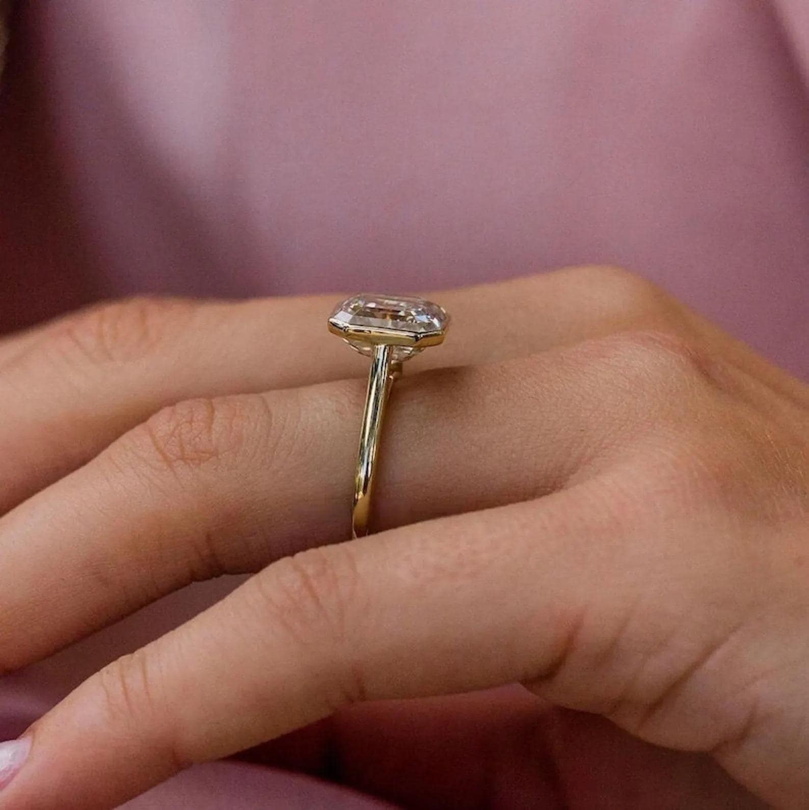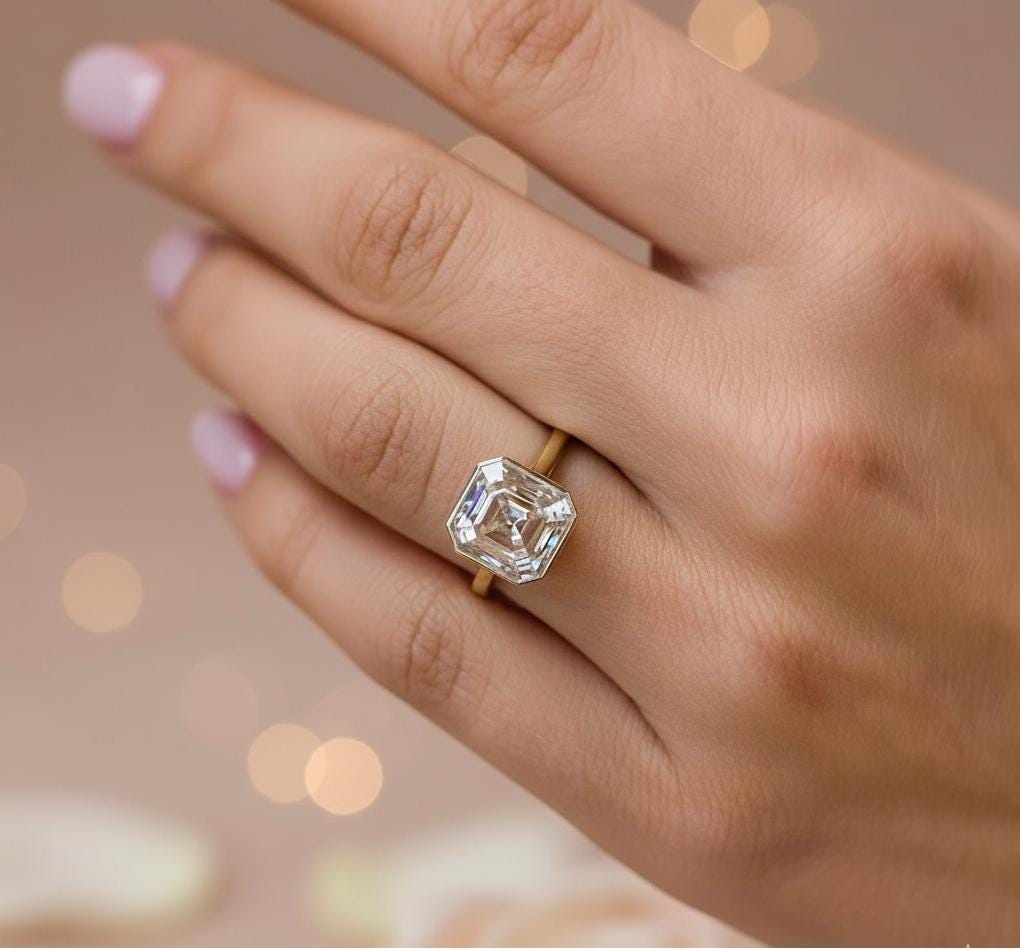 2CT Asscher Cut Moissanite Engagement Ring | Bezel Set Wedding Ring, Solitaire Proposal Ring | Classic Moissanite Promise Ring for Women