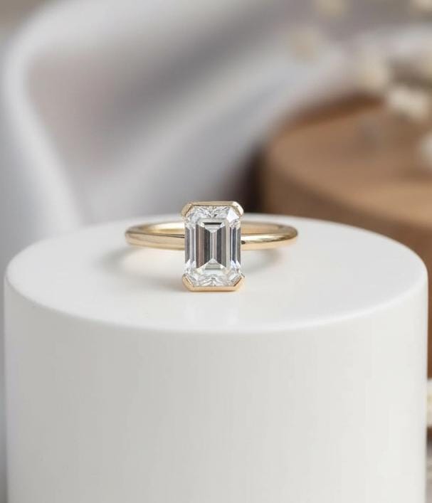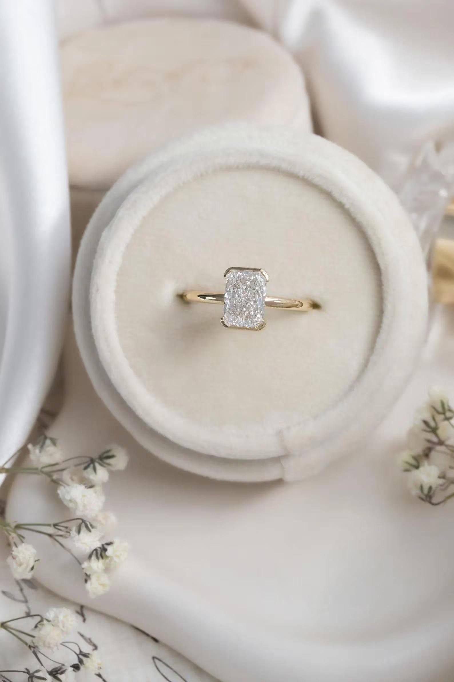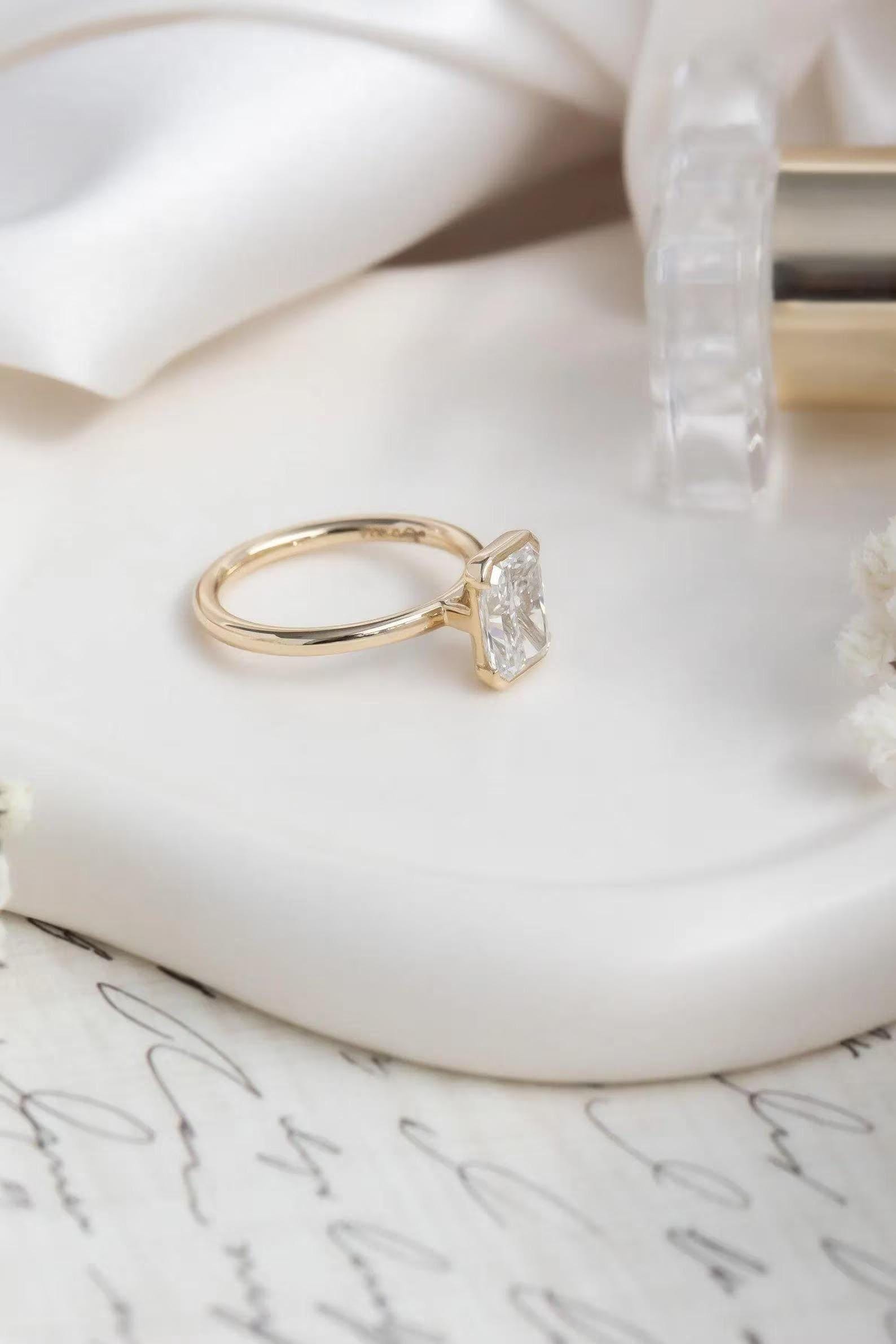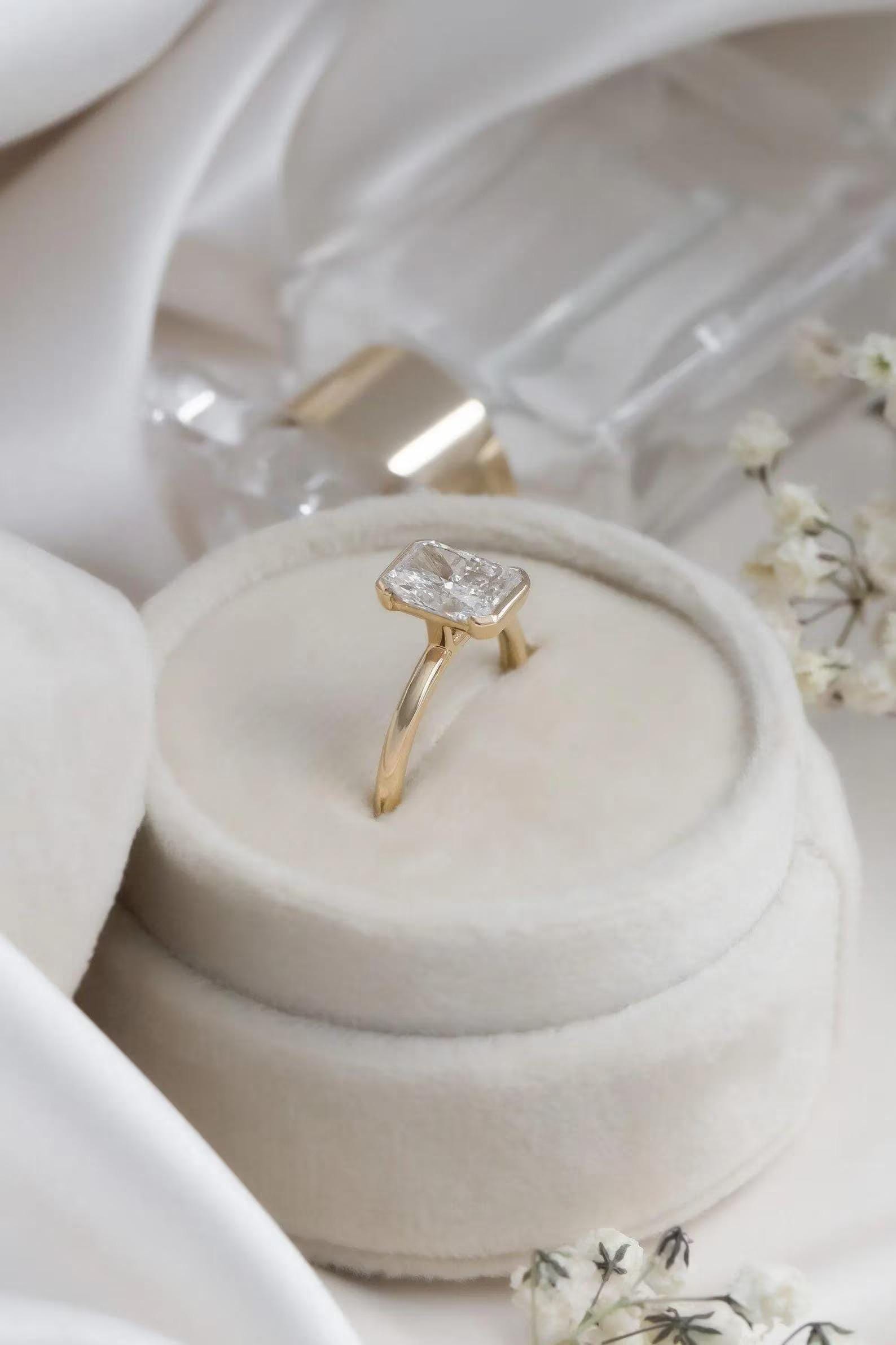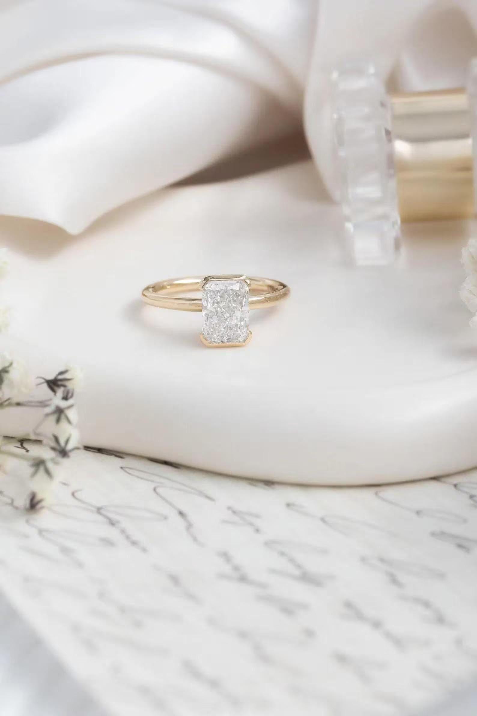 2Ct Radiant Cut Moissanite Half Bezel Engagement Ring | 14k Solid Gold Solitaire Diamond Ring | Diamond Proposal Ring | Personalized Gift