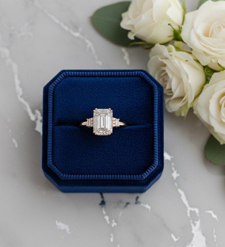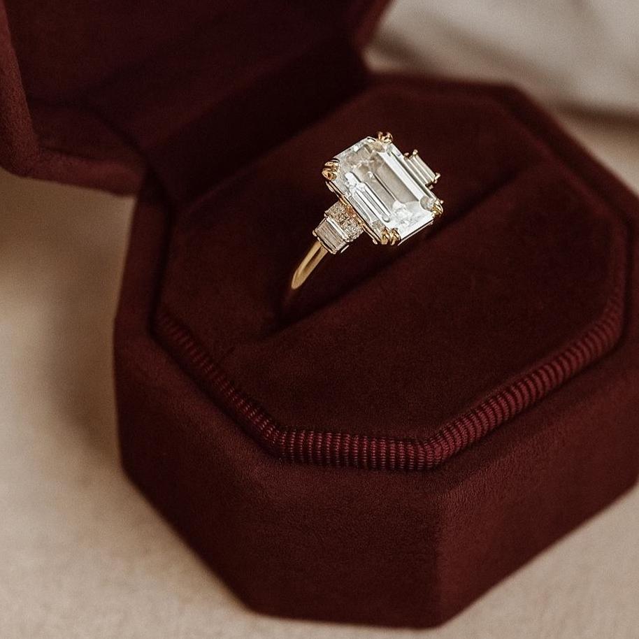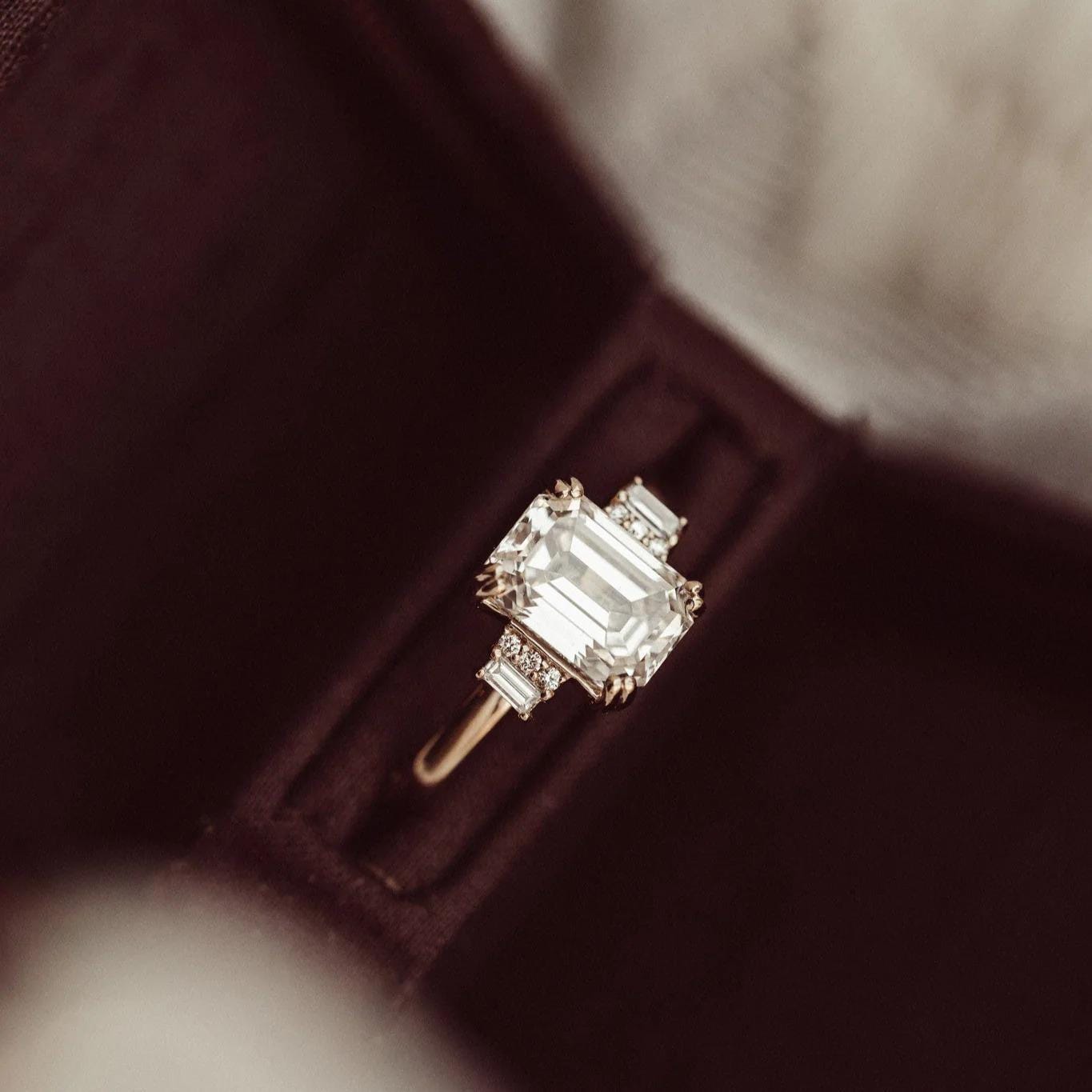 💎Main Stone:2.50ct Moissanite 💎Main Stone Color: Colorless 💎Main Stone Shape: Emerald 💎Main stone creation: Lab-created