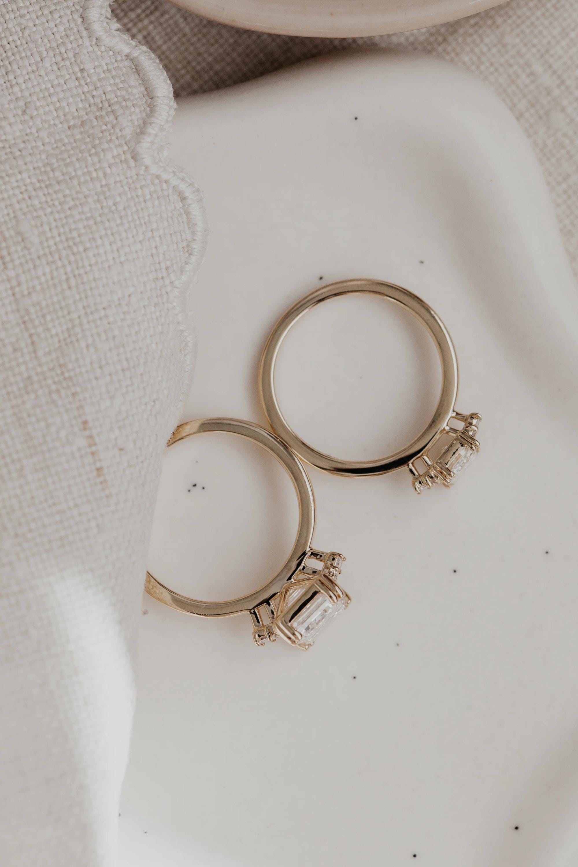 Emerald Moissanite Engagement Ring: 14K Gold Baguette Diamond Cluster 2ct Emerald Cut Moissanite Engagement Ring | Solitaire Moissanite Ring | Diamond Wedding Promise Ring -Solid Gold Anniversary Ring for Women