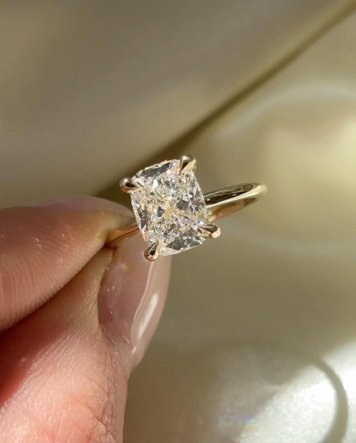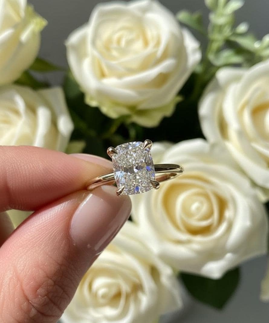 Forever One Cushion Cut Solitaire Engagement Ring | Rose 14k Gold Moissanite Cushion Ring | Cushion Solitaire Ring- Cushion Cut Ring For Her