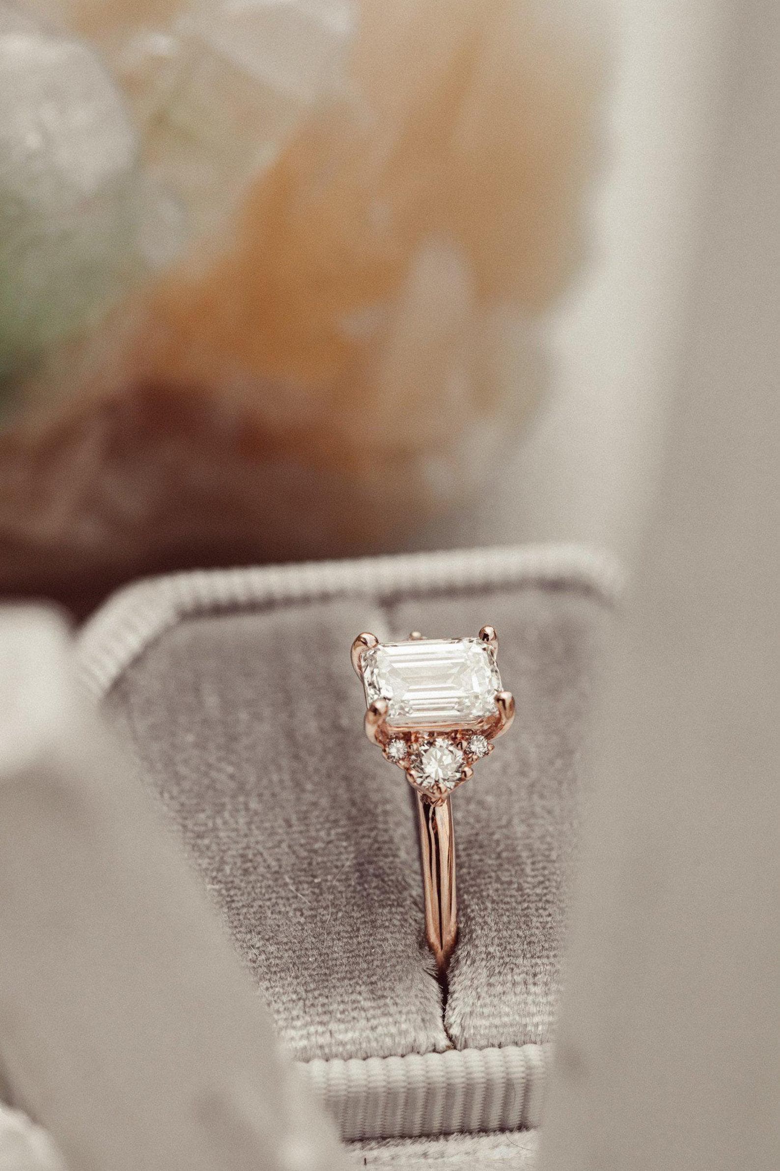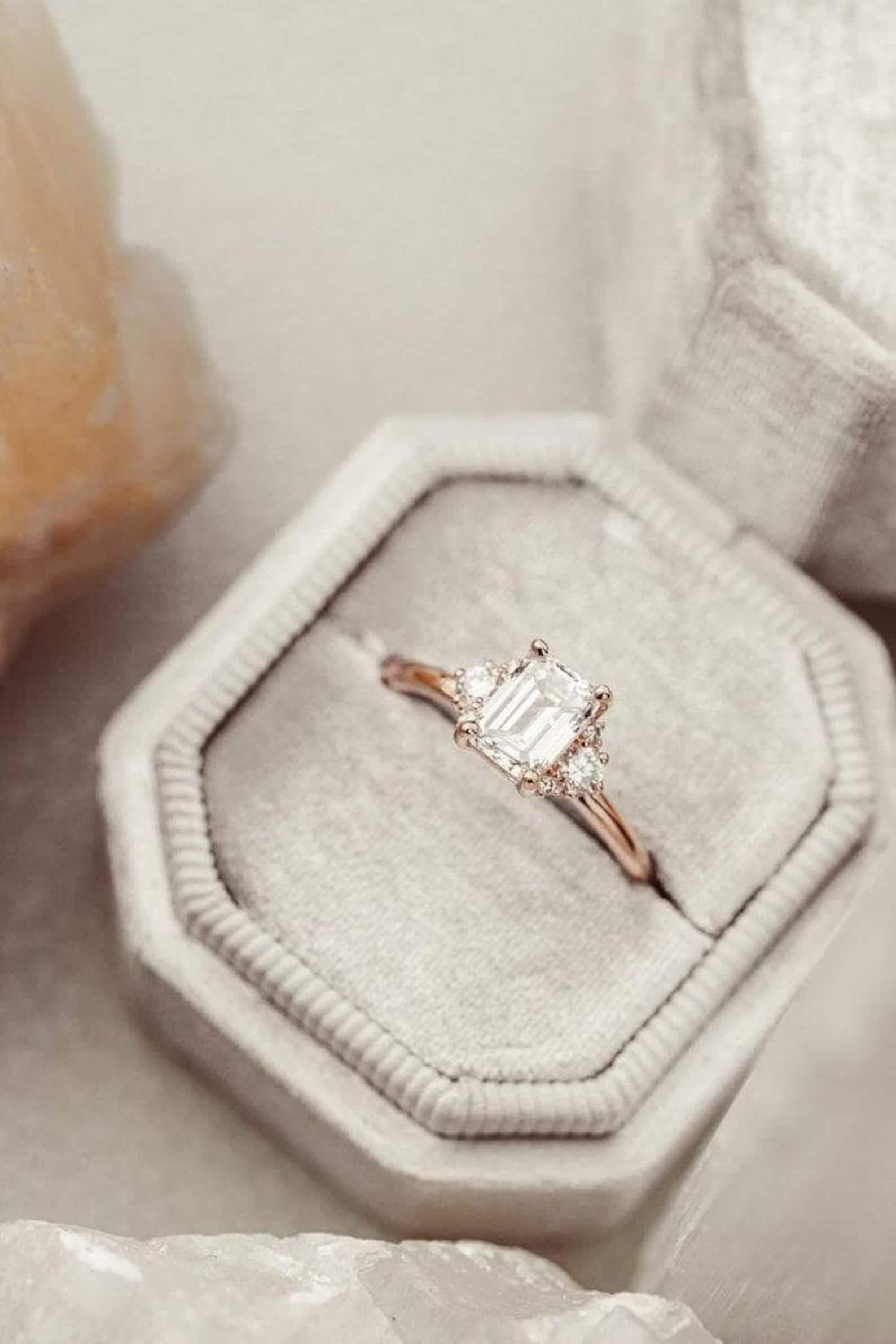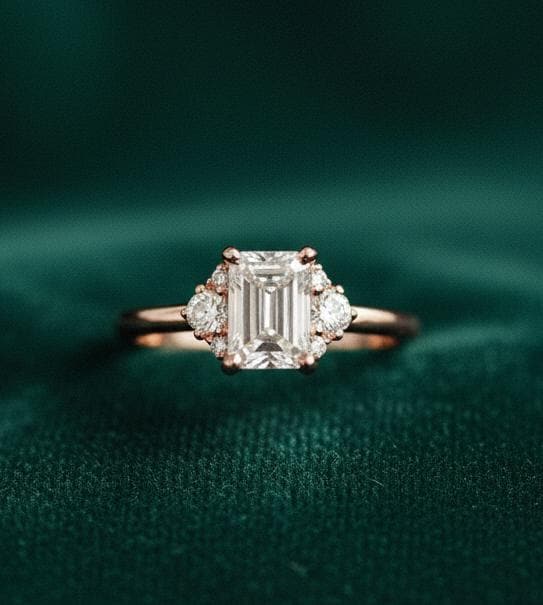 💎Main Stone: Moissanite 💎Main Stone Color: Colorless 💎Main Stone Shape: Emerald 💎Main stone creation: Lab-created 💎Side Stone : CZ