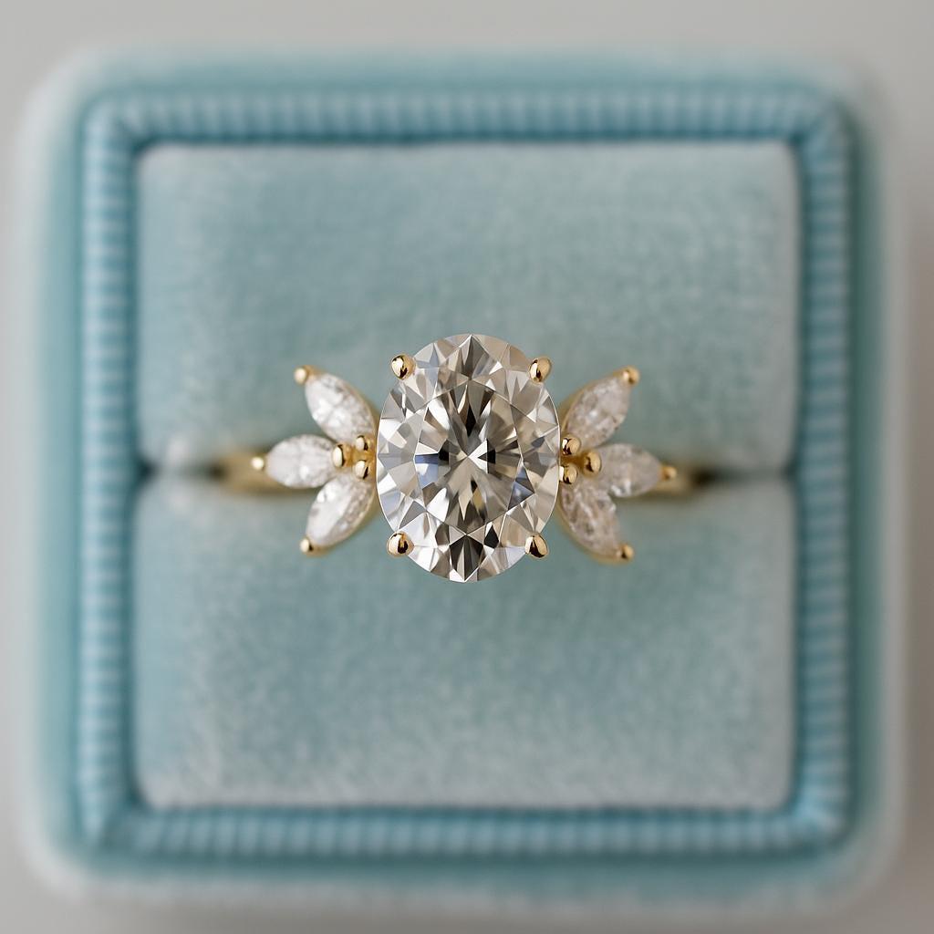 💎Main Stone: Moissanite 💎Main Stone Color: Colorless 💎Main Stone Shape: Oval 💎Main stone creation: Lab-created 💎Side Stone : Marquise (cz)