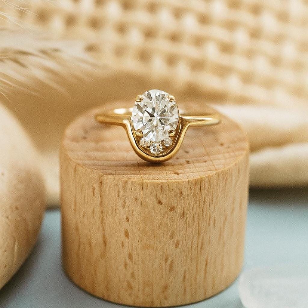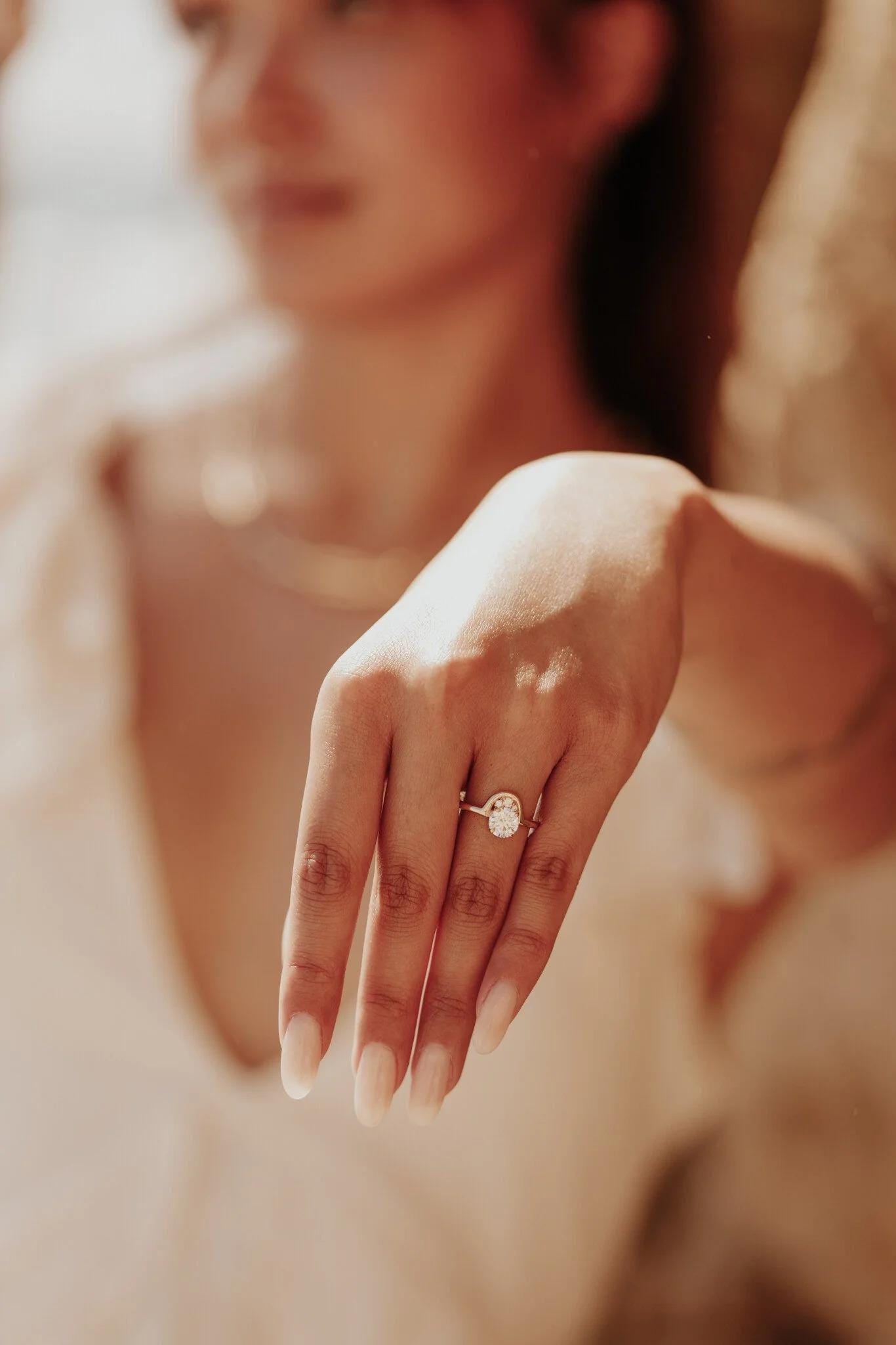 Round Cut Moissanite Engagement Ring | 14K Solid U Shaped Gold Solitaire Wedding Cluster Ring, Proposal Ring, Delicate Bypass Ring For Women
