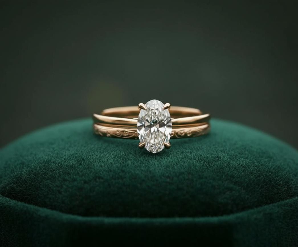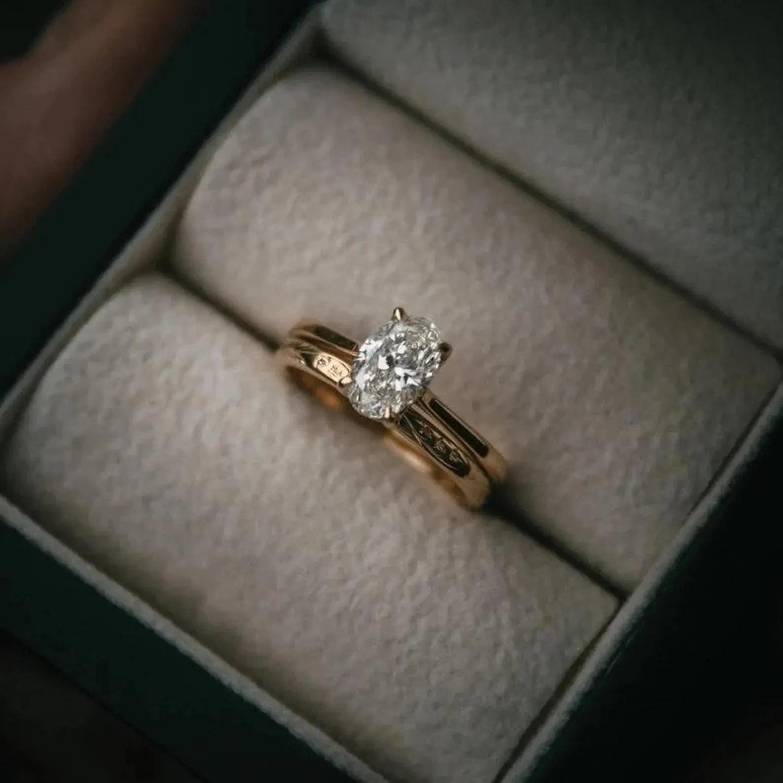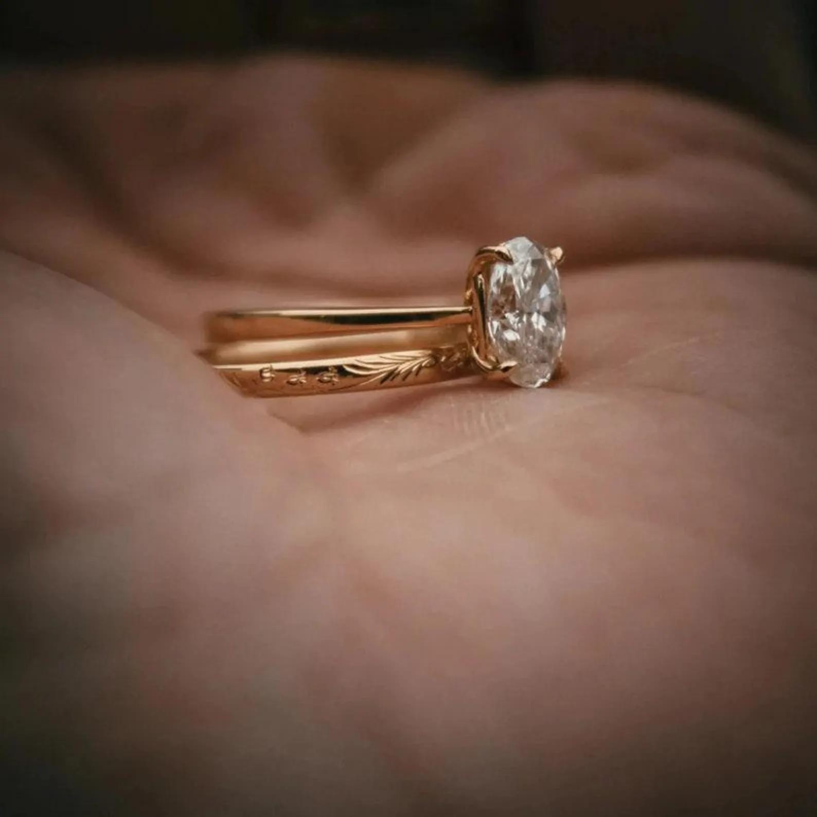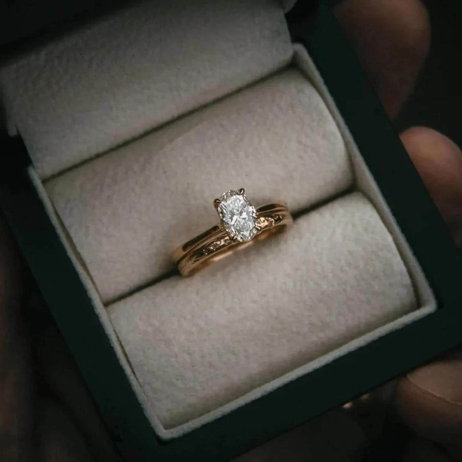 💎Ring : 2psc 💎Main Stone: Moissanite 💎Main Stone Color: Colorless 💎Main Stone Shape: Oval 💎Main stone creation: Lab-created