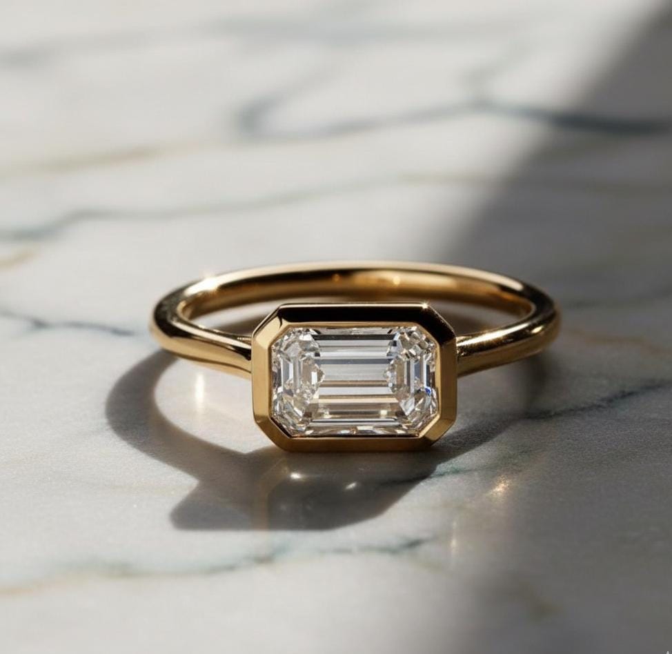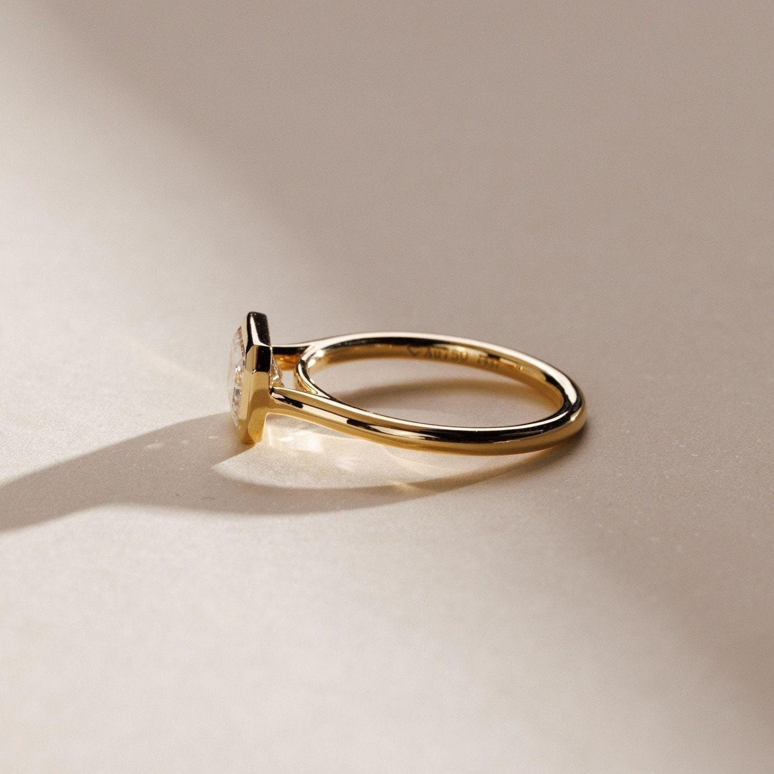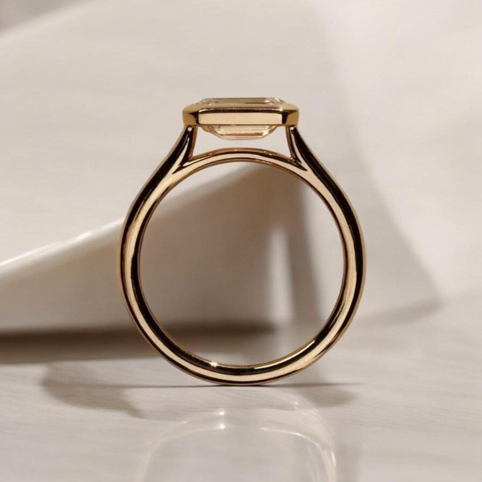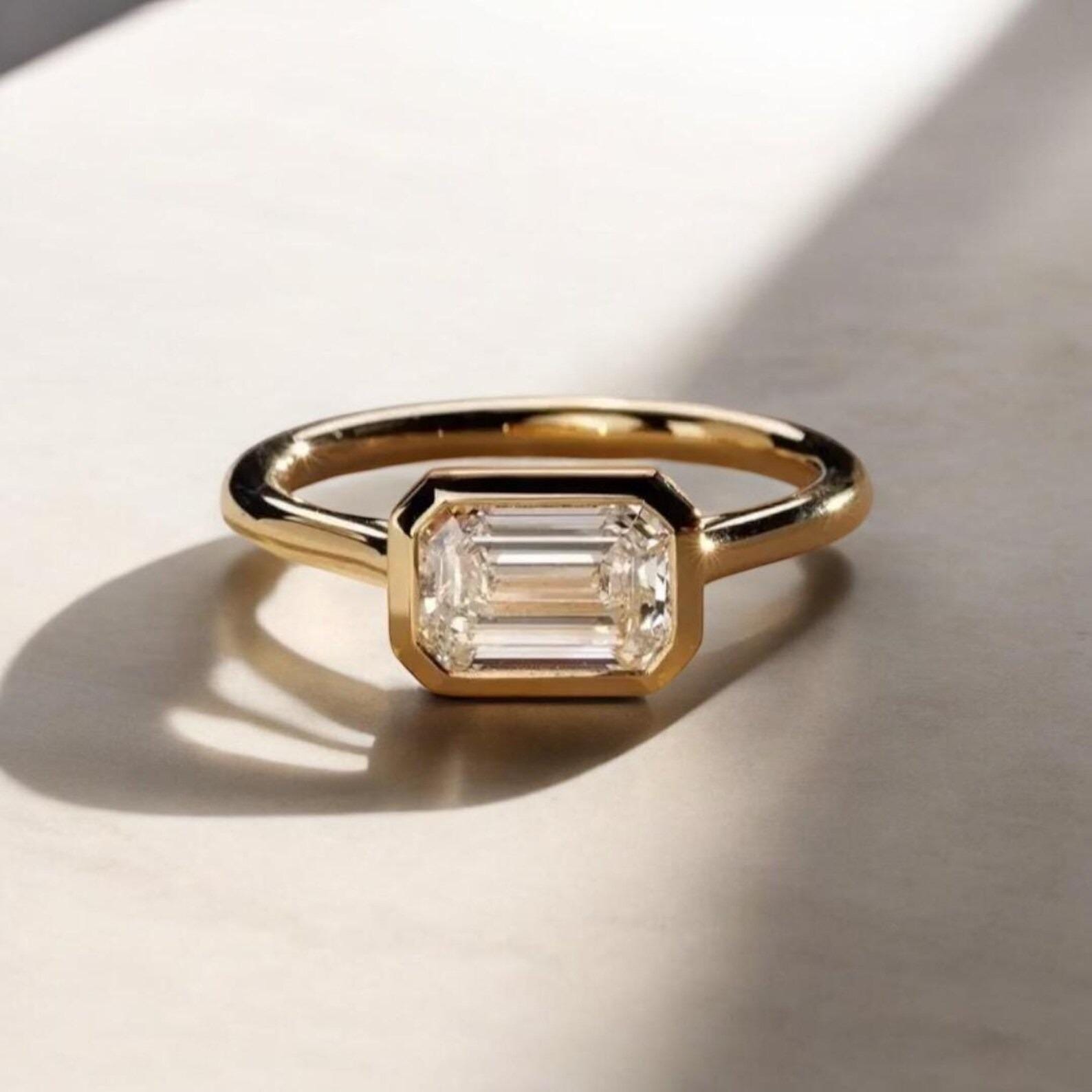 2ct Emerald Cut Moissanite Engagement Ring | Diamond Solitaire Minimalist Ring | Antique Delicate Wedding Ring | 14k Solid Gold Bridal Ring