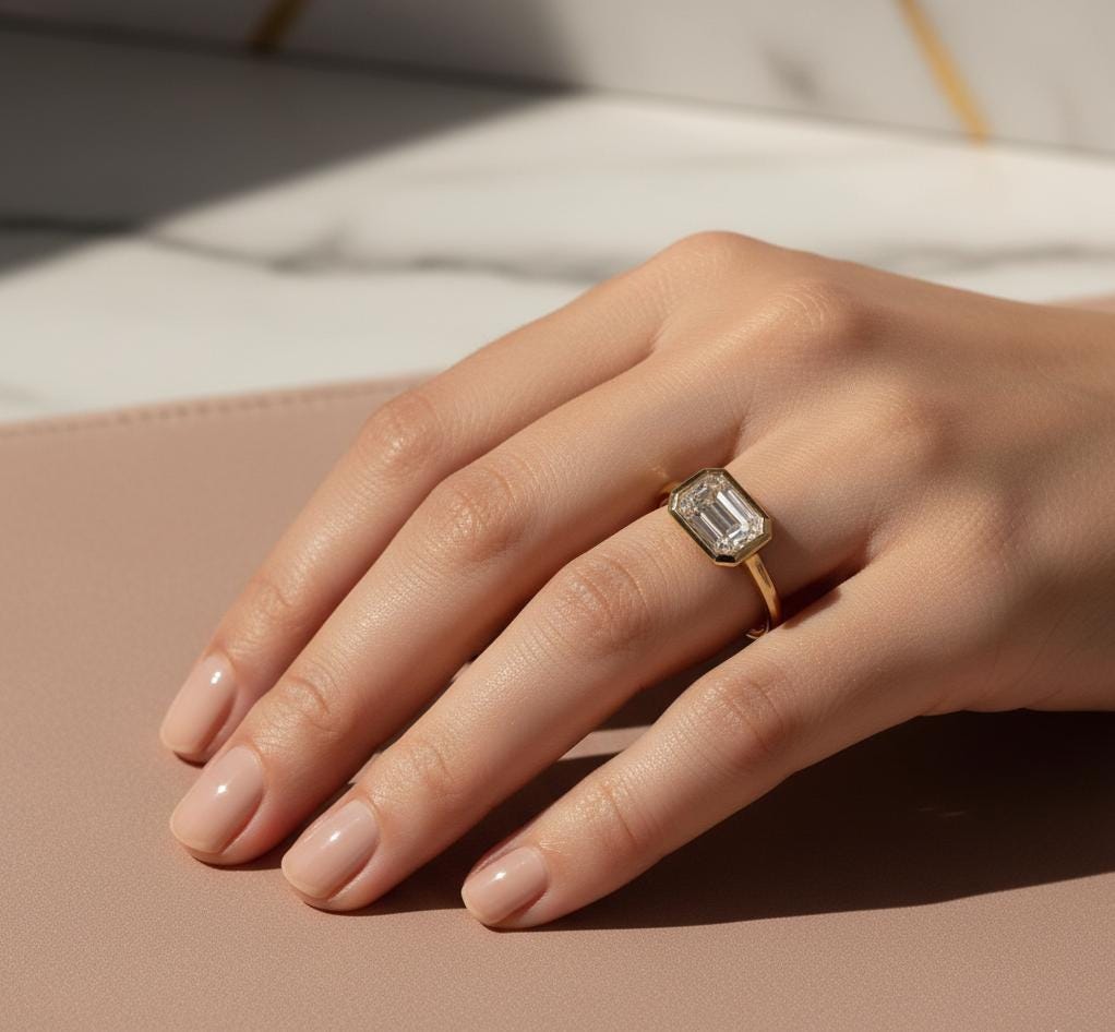💎Main Stone:2ct Moissanite 💎Main Stone Color: Colorless 💎Main Stone Shape: Emerald 💎Main stone creation: Lab-created