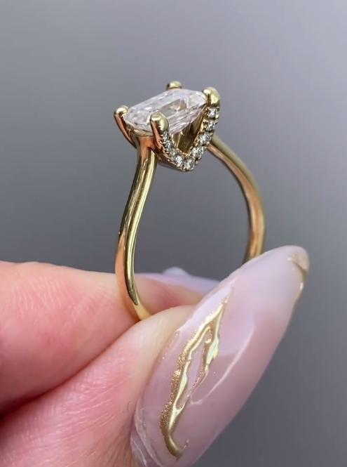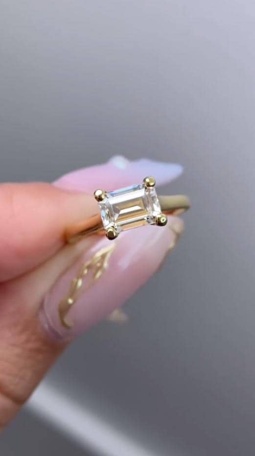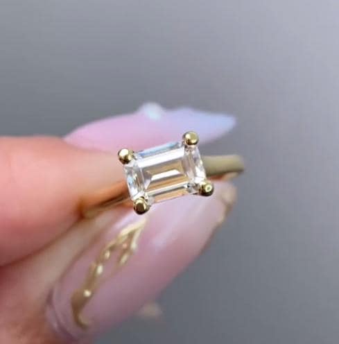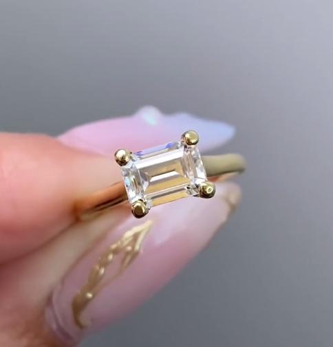 💎Main Stone : 1.5ct Moissanite 💎Main Stone Color: Colorless 💎Main Stone Shape: Emerald 💎Main stone creation: Lab-created 💎 Side Stone : Round