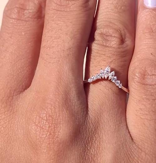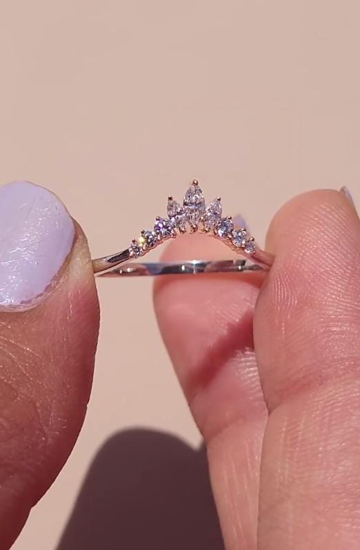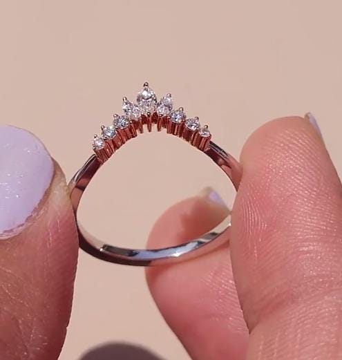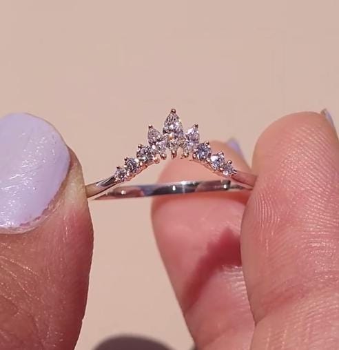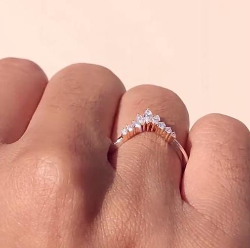 Marquise cut Moissanite Curved Wedding band | Art deco 9 stone ring Matching Diamond wedding Band | Promise Anniversary ring gift for her