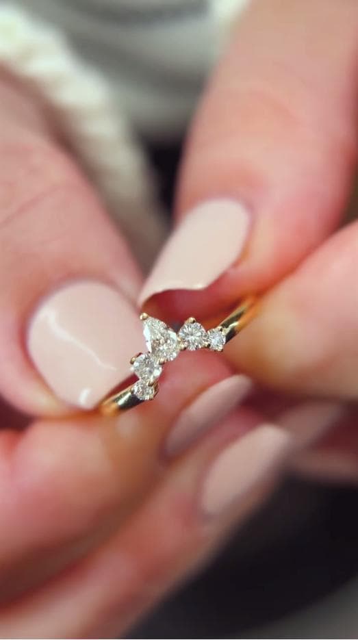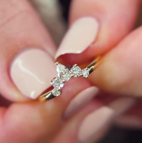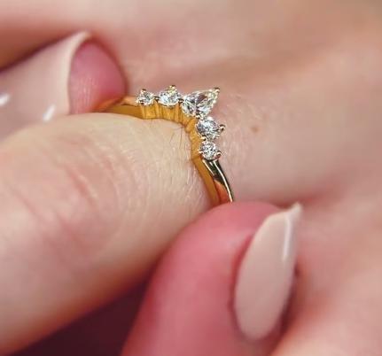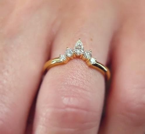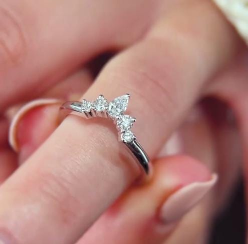 Pear Cut Moissanite Curved Wedding Band | 14k Gold Pearl Wedding Ring | Stacking Matching Promise Custom Ring | Anniversary Gift For Her