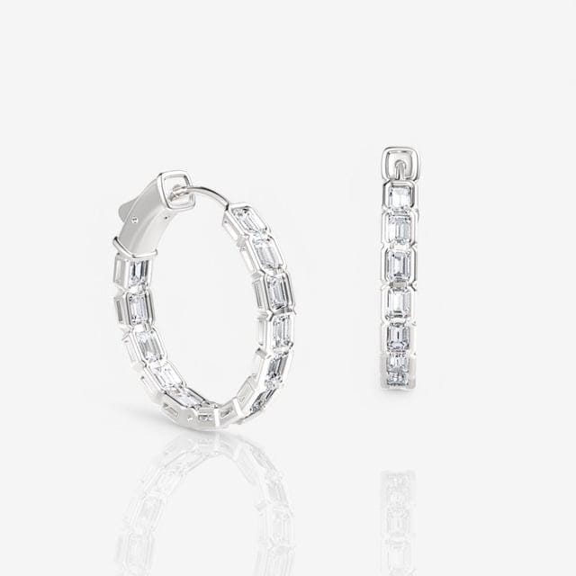 Half Bezel Emerald-Cut Lab-Grown Diamond Hoop Earrings | 21mm | 10k Gold Earrings | Gift For Mom | Annversary Gif Idea