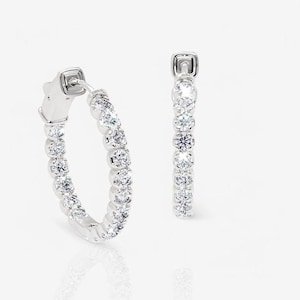 Experience luxury and sustainability with our Half Bezel Lab Diamond Emerald Hoop Earrings! Choose from natural or lab grown diamonds for a guilt-free sparkle. With a sleek 21mm size, these earrings are the perfect versatile statement piece for any occasion. Elevate your style and values with these stunning earrings.