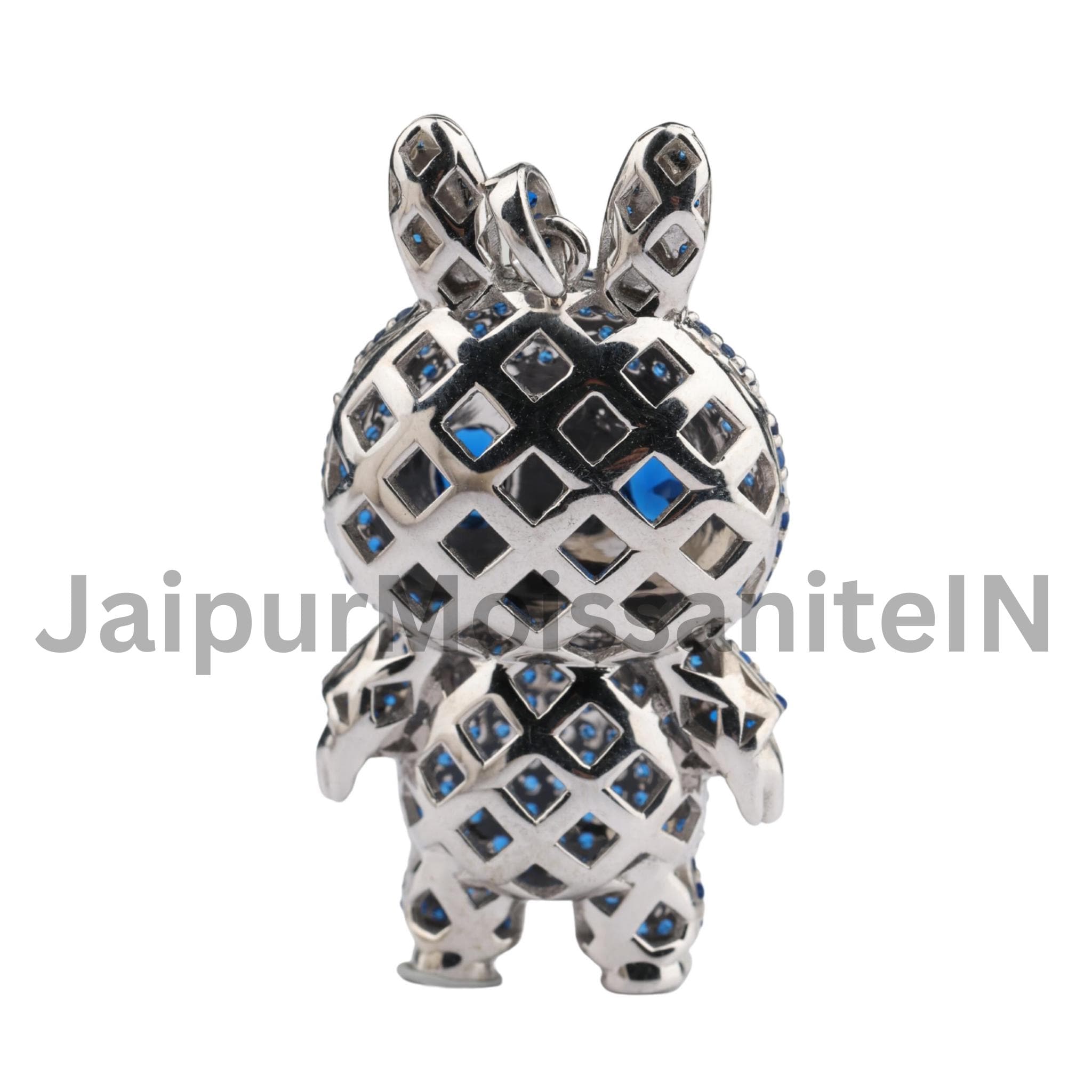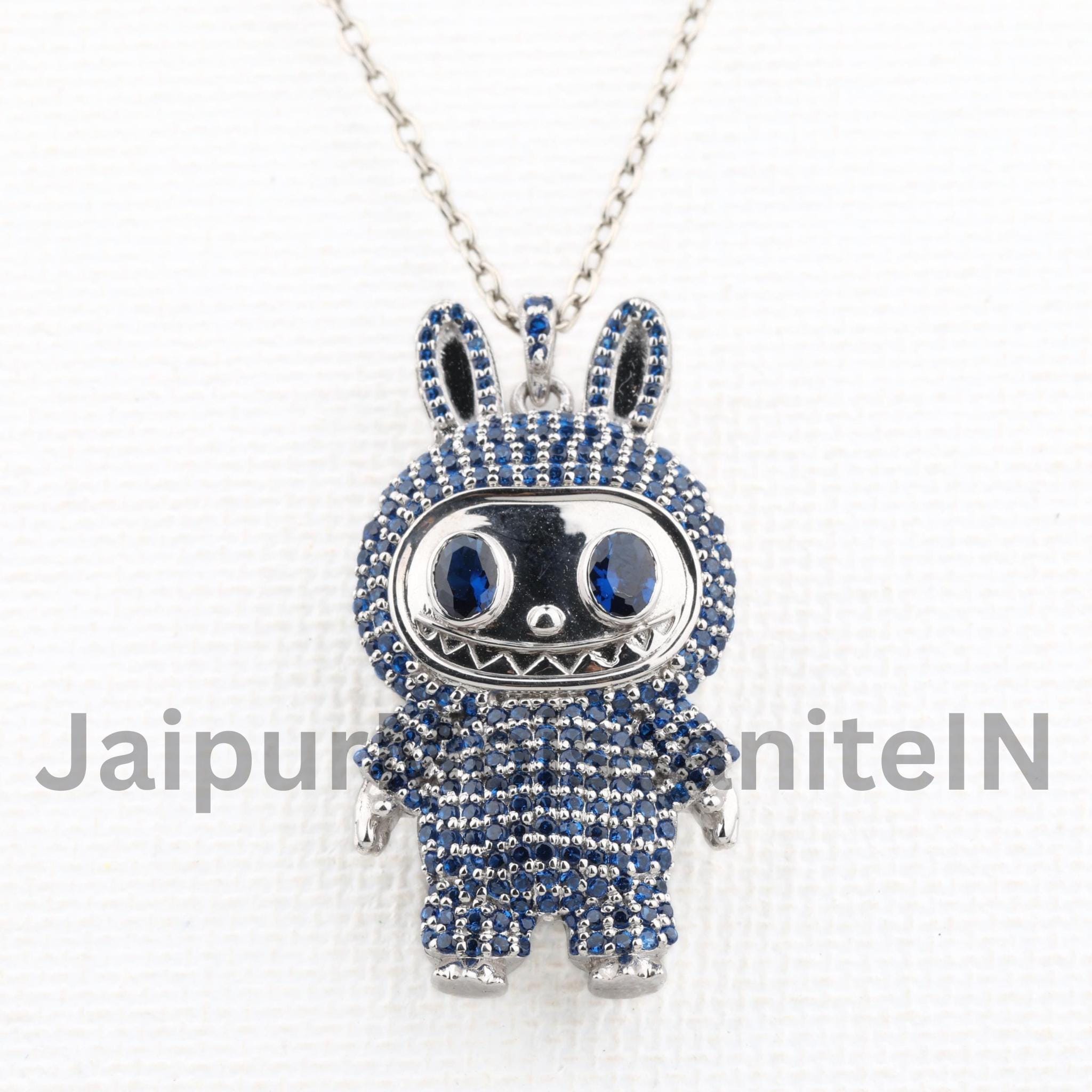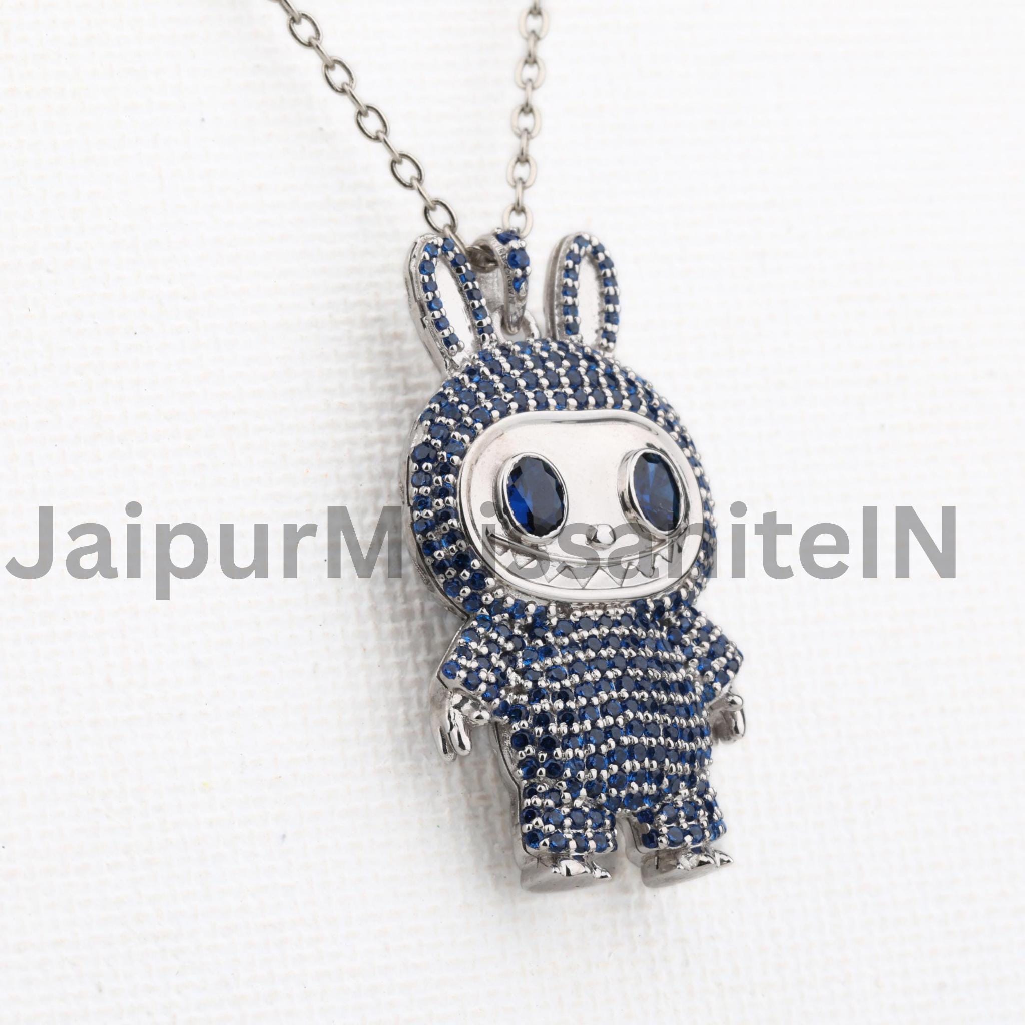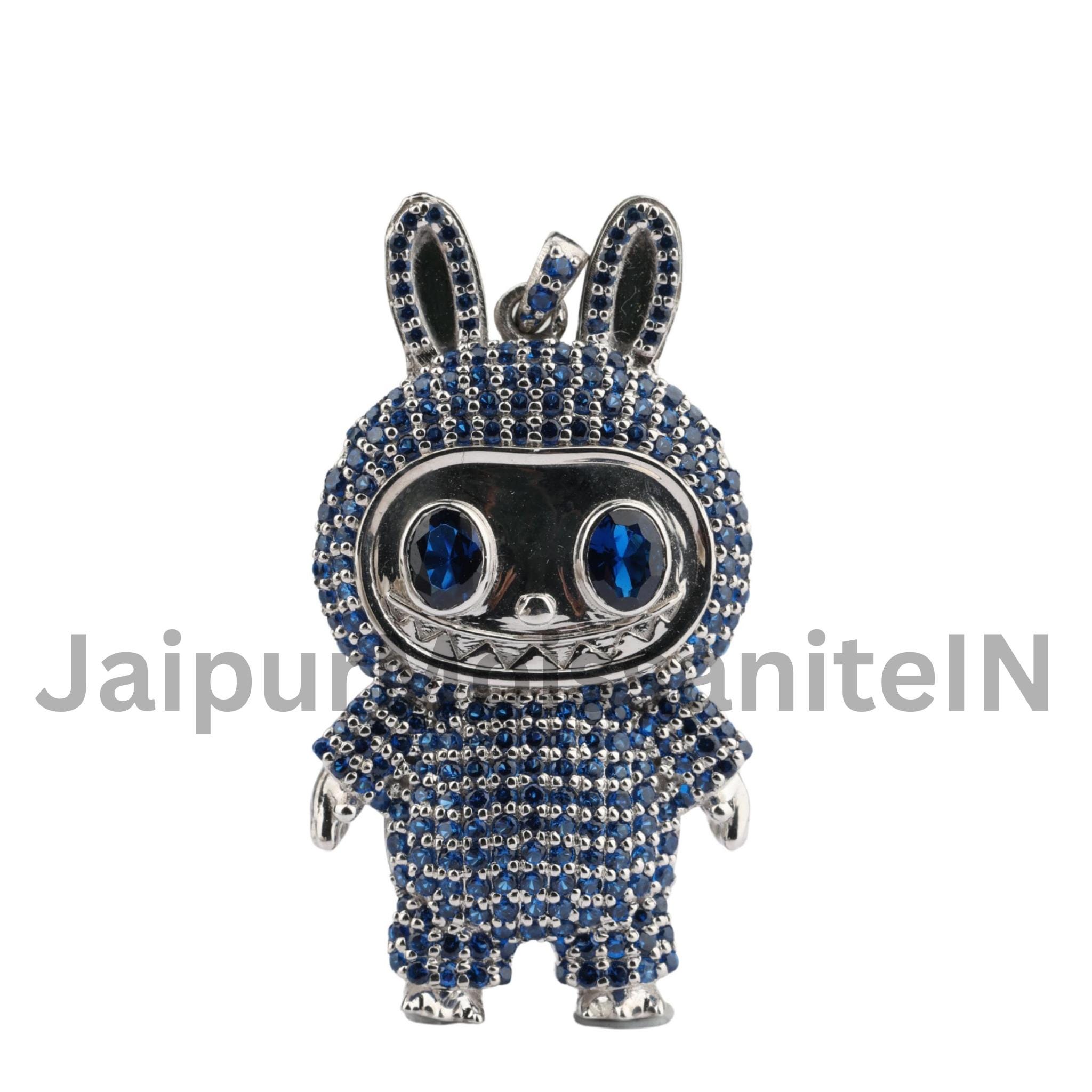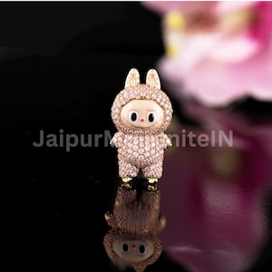 Labubu Charm Pendant | Iced Out Cute Bling Character Necklace | Hip Hop Cartoon Charm | Silver Diamond Custom | Teddy Bear Pendant