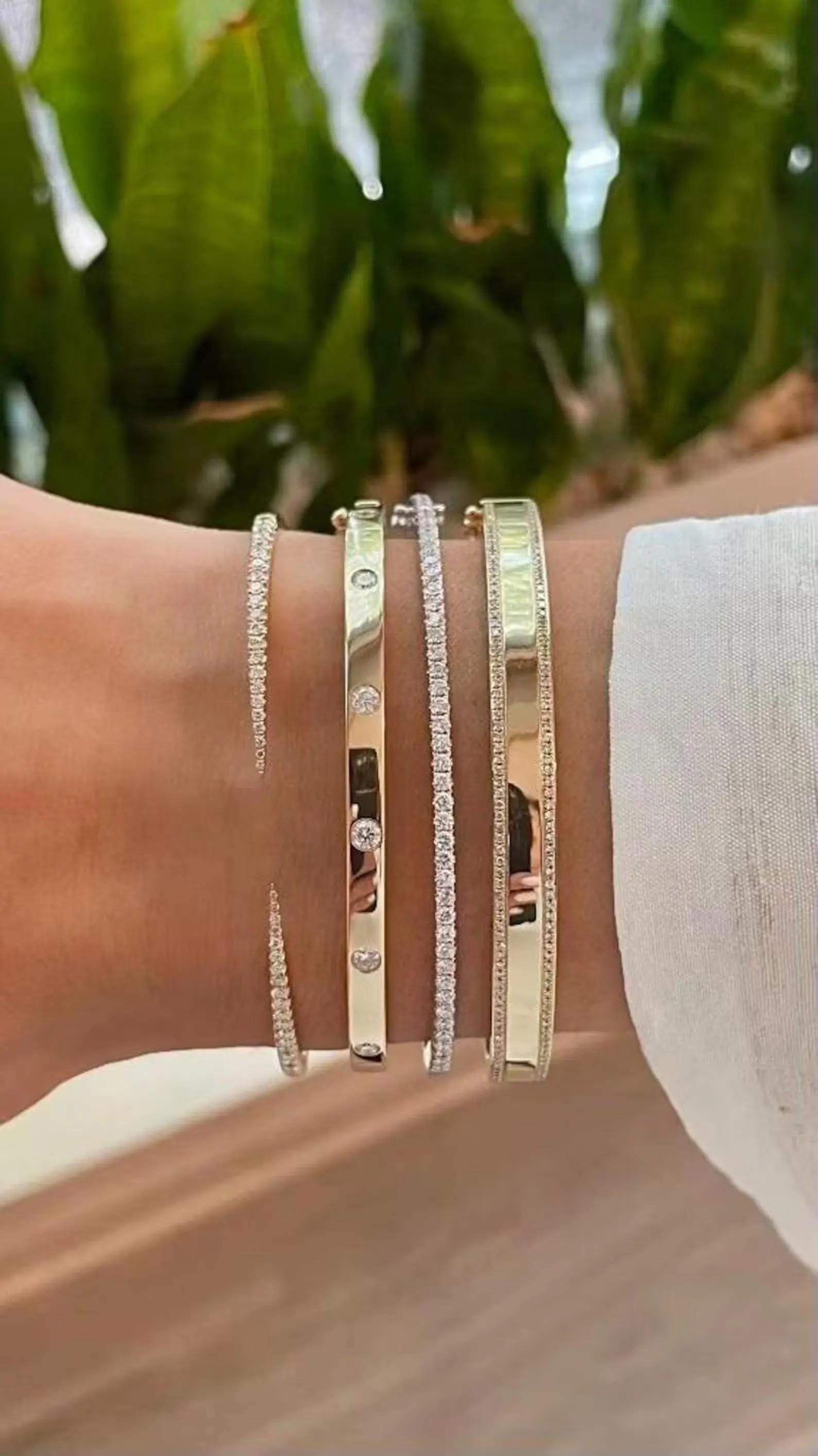 💎 2nd Bangle: 💎 Stone Shape : Round Cut 💎 Stone Size : 2.50 MM 💎 Stone Weight: 0.60 TCW