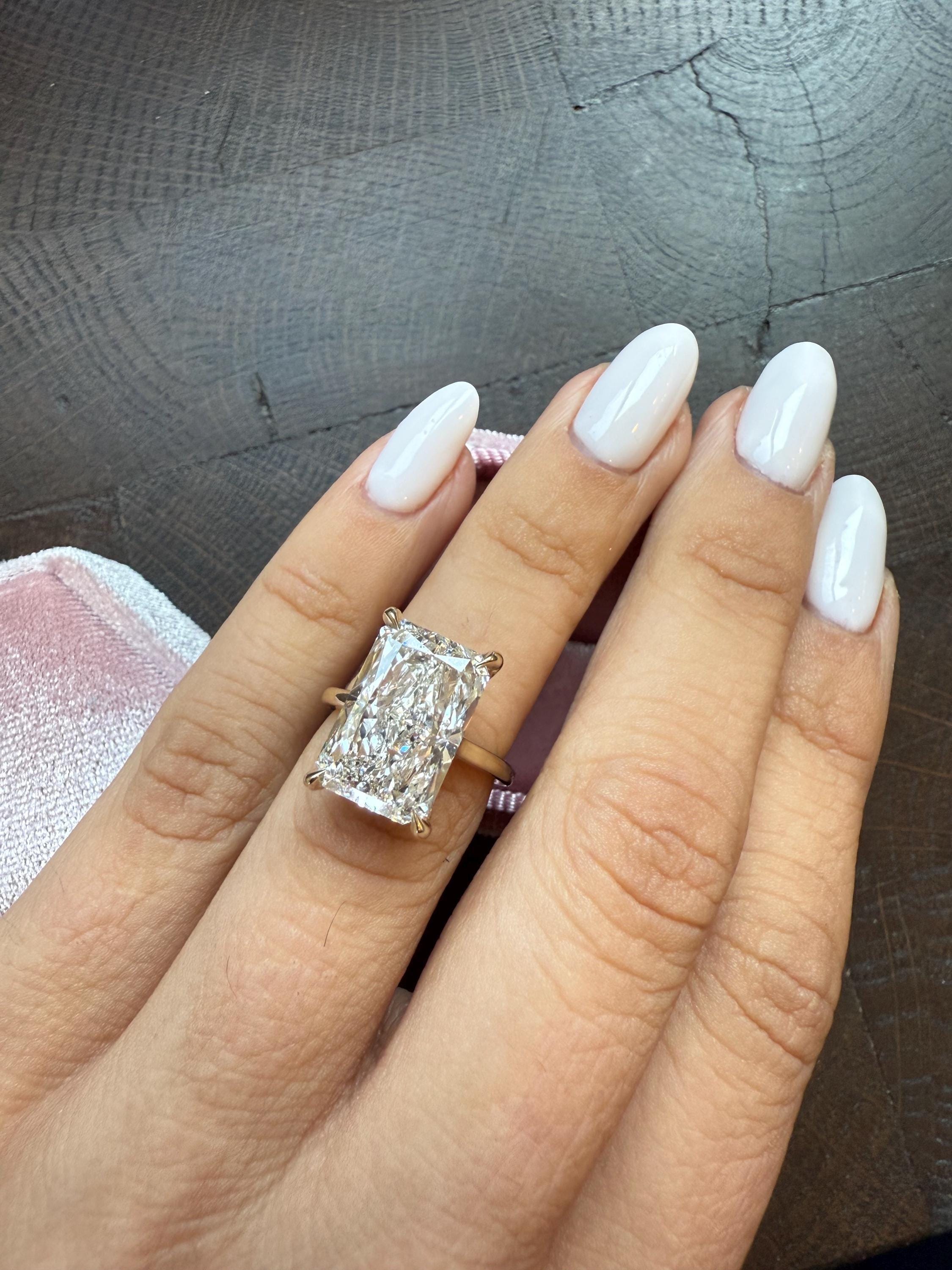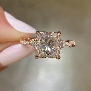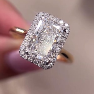 💎Main Stone: Moissanite And CZ ( 6 ct ) 💎Main Stone Color: Colorless 💎Clarity : VVS 💎Main Stone Shape: Radiant 💎Main stone creation: Lab-created 💎Side Stone : Round 💎Band thickness: 1.8 aprox